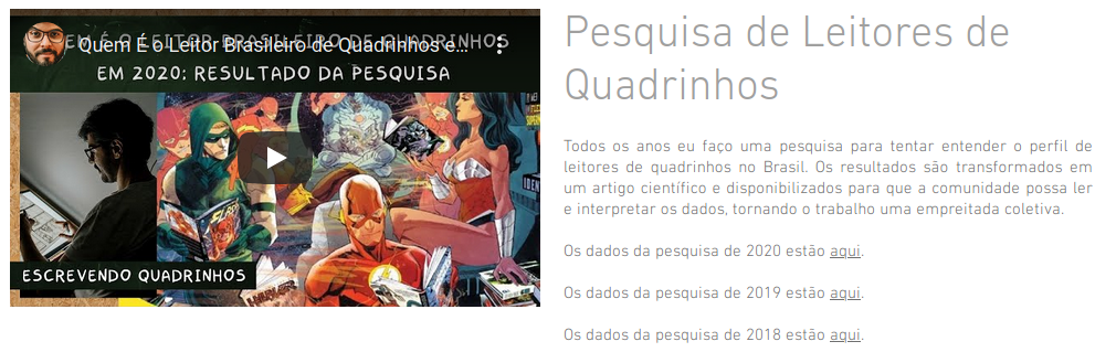O objetivo desta apresentação é explorar os resultados da "Pesquisa de Leitores de Quadrinhos", organizada anualmente pelo quadrinista Rapha Pinheiro.